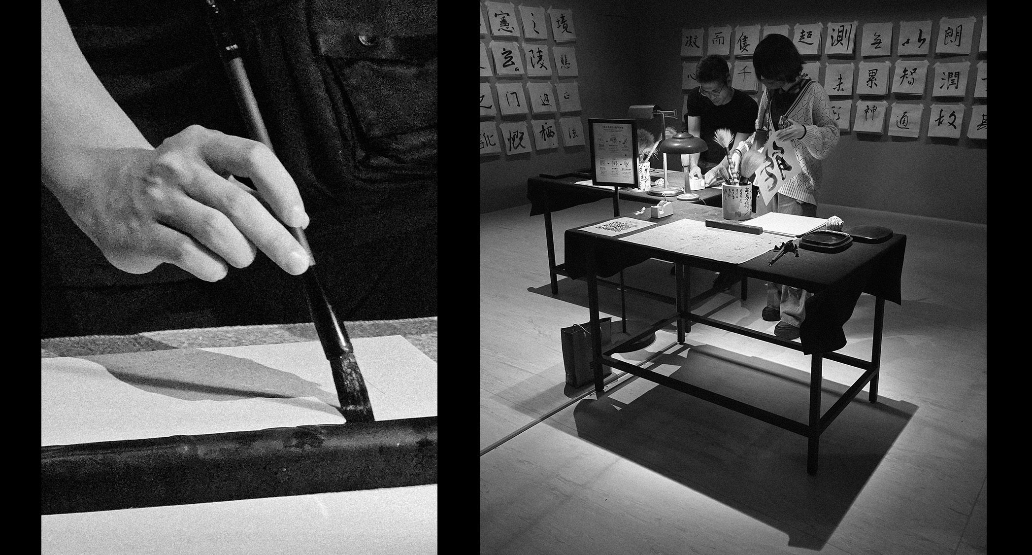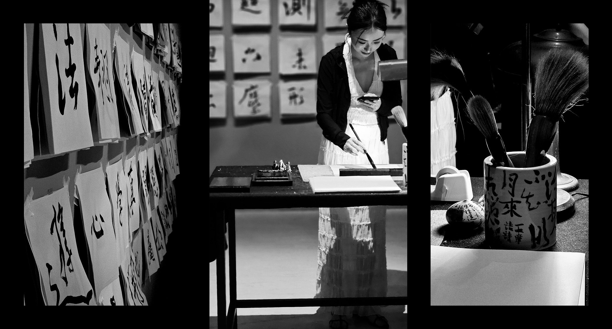 During the calligraphy workshop, she takes the brush in her hands and lets the ink glide across the paper. Her name comes to life under her strokes, each letter dancing between thick and thin lines: