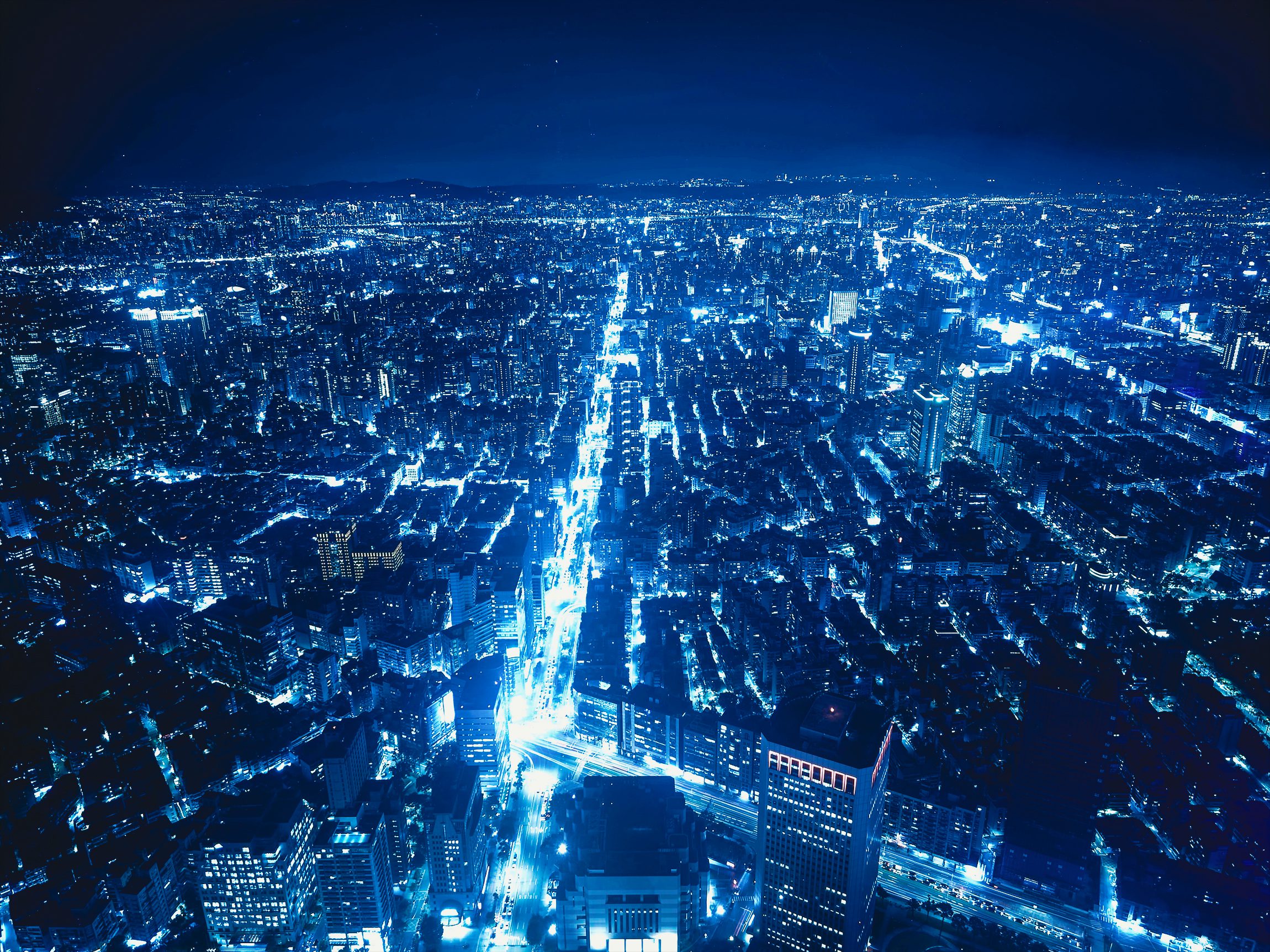 the urban becomes cosmic, and the horizon becomes infinite. It is a city that never sleeps, yet dreams nonetheless—an electric, vibrant dream, traversed by rivers of light.