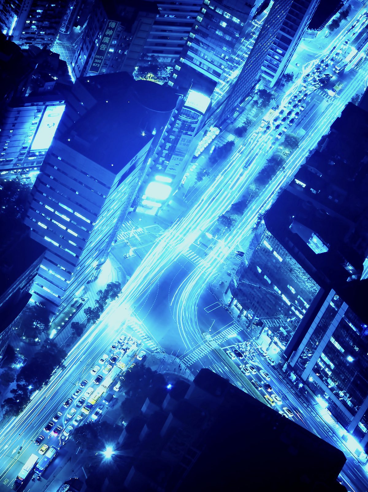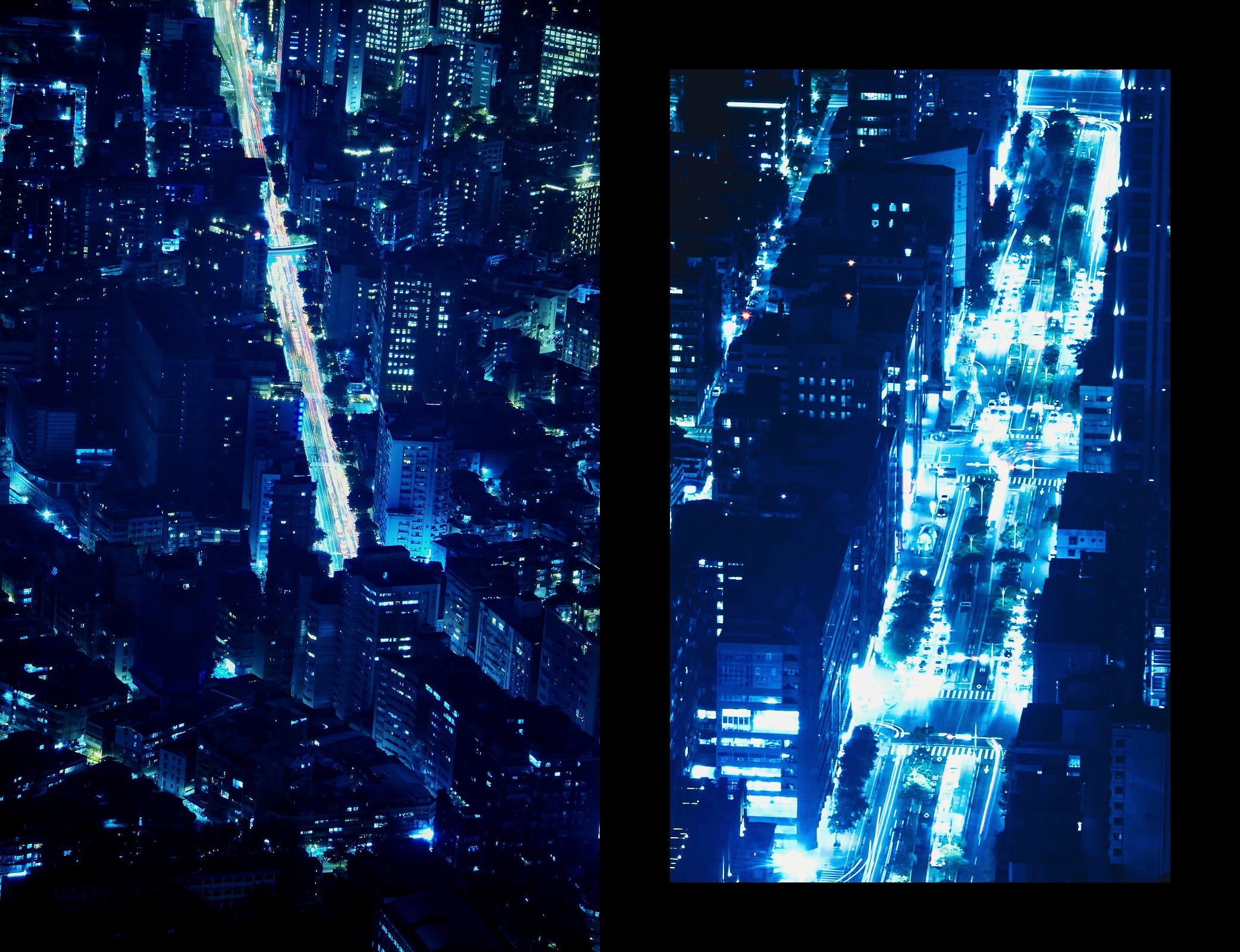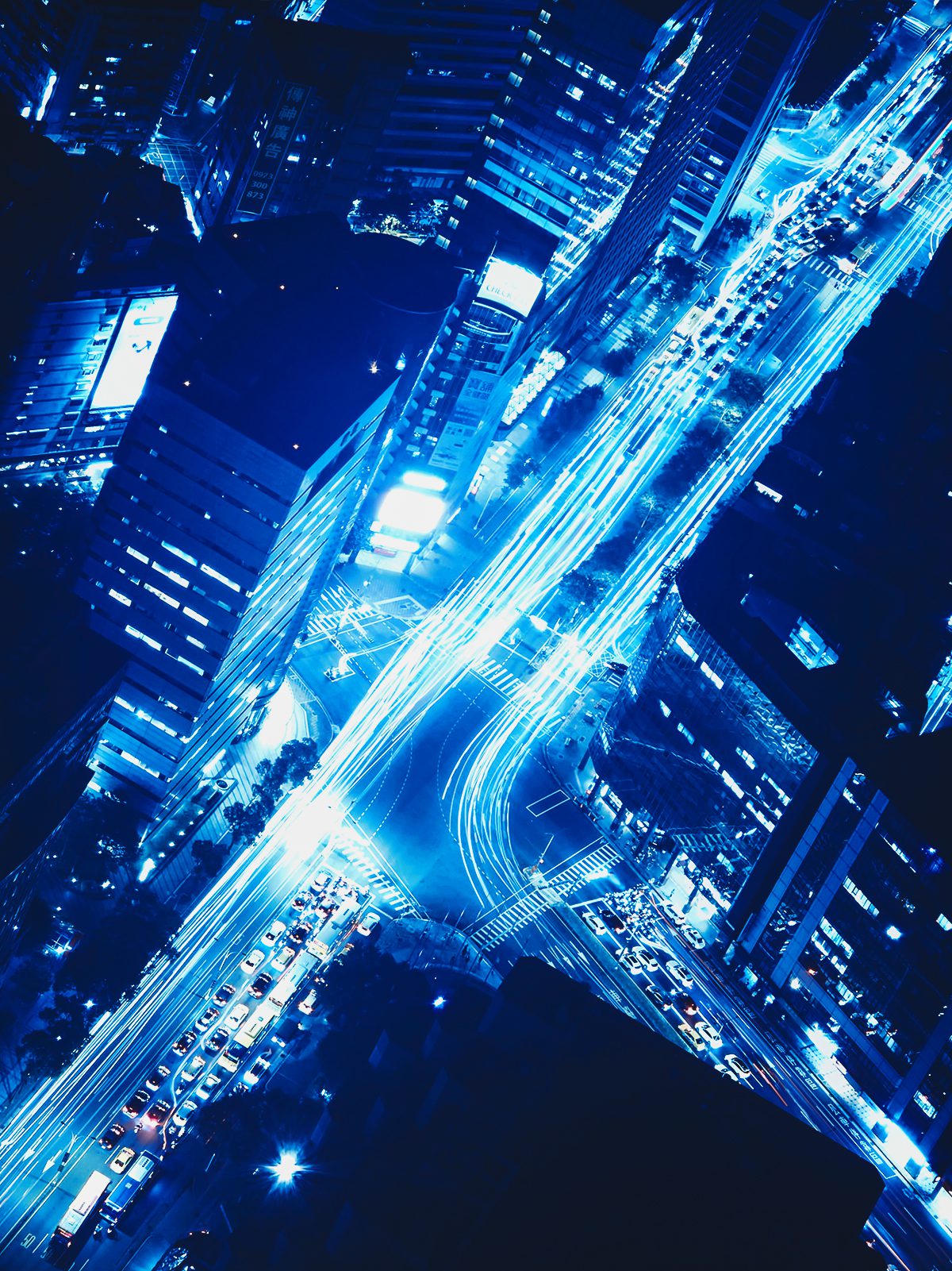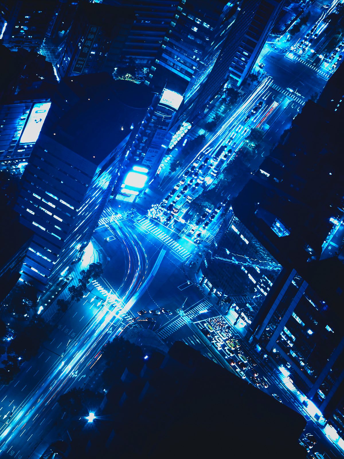 Under the gaze of the deep blue sky, the city becomes a painting. Roads are no longer routes, but brushstrokes that glide, intersect, and fade into the shadows. Each headlight casts a luminous nuance that illuminates this nocturnal canvas. In this vision, reality fades away to make room for impression, and we no longer contemplate a city, but a work of art, suspended between dreams and reality.