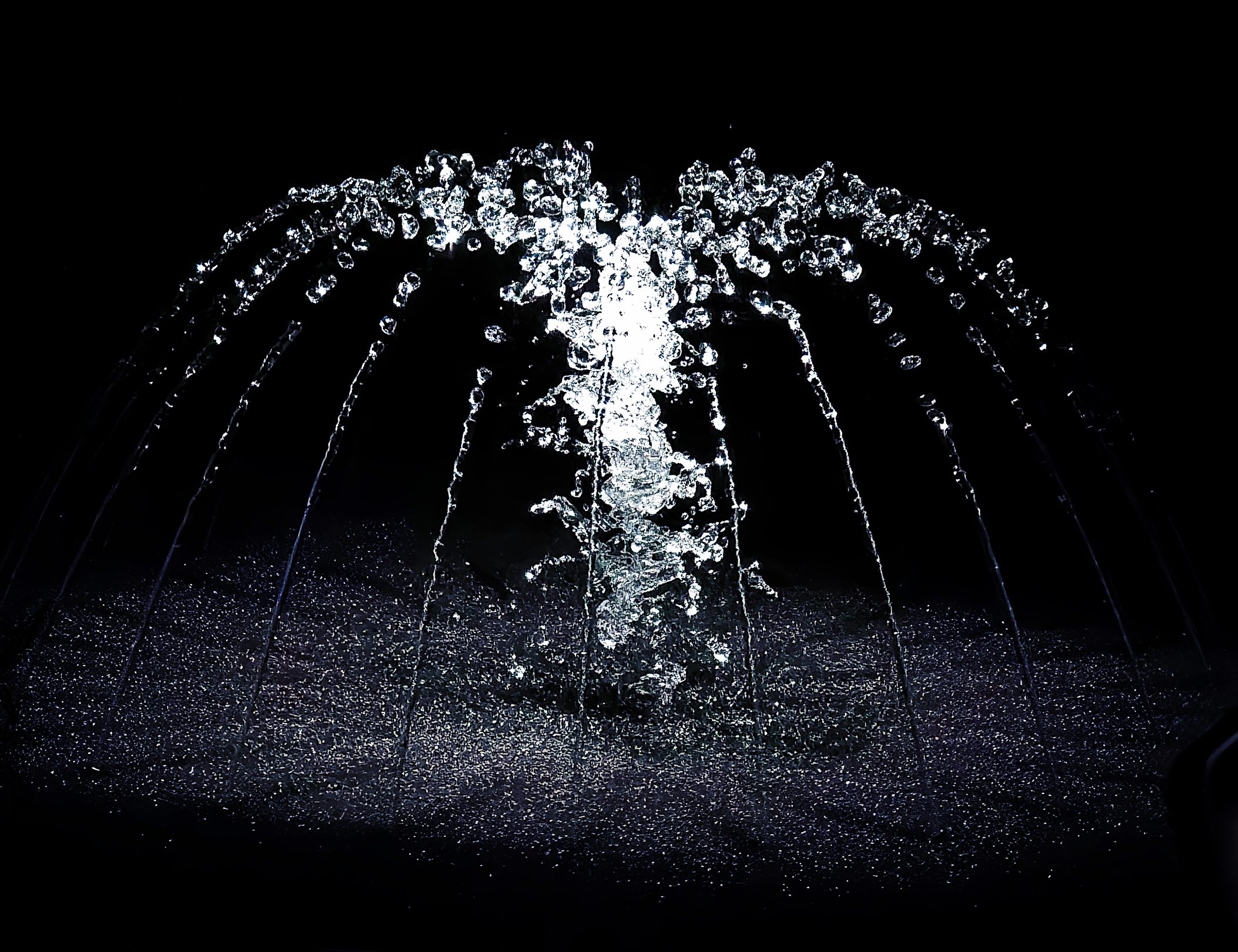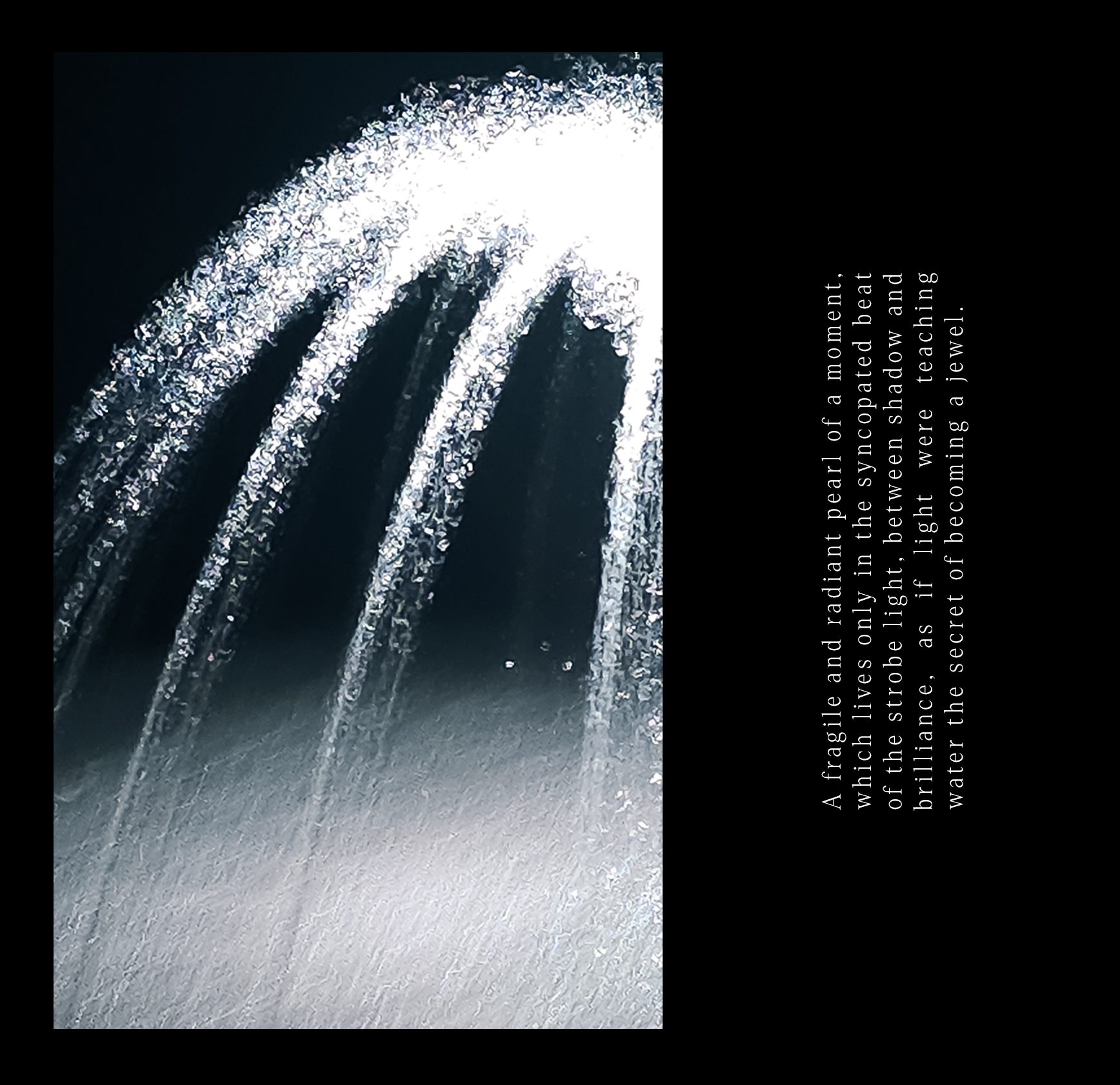 The stroboscopic flash suspends the moment and transforms the invisible flow into a sculpture of light. Each drop of water freezes into a sparkling pearl, bursting like a jewel in the air, revealing the secret beauty of a movement turned into eternity.