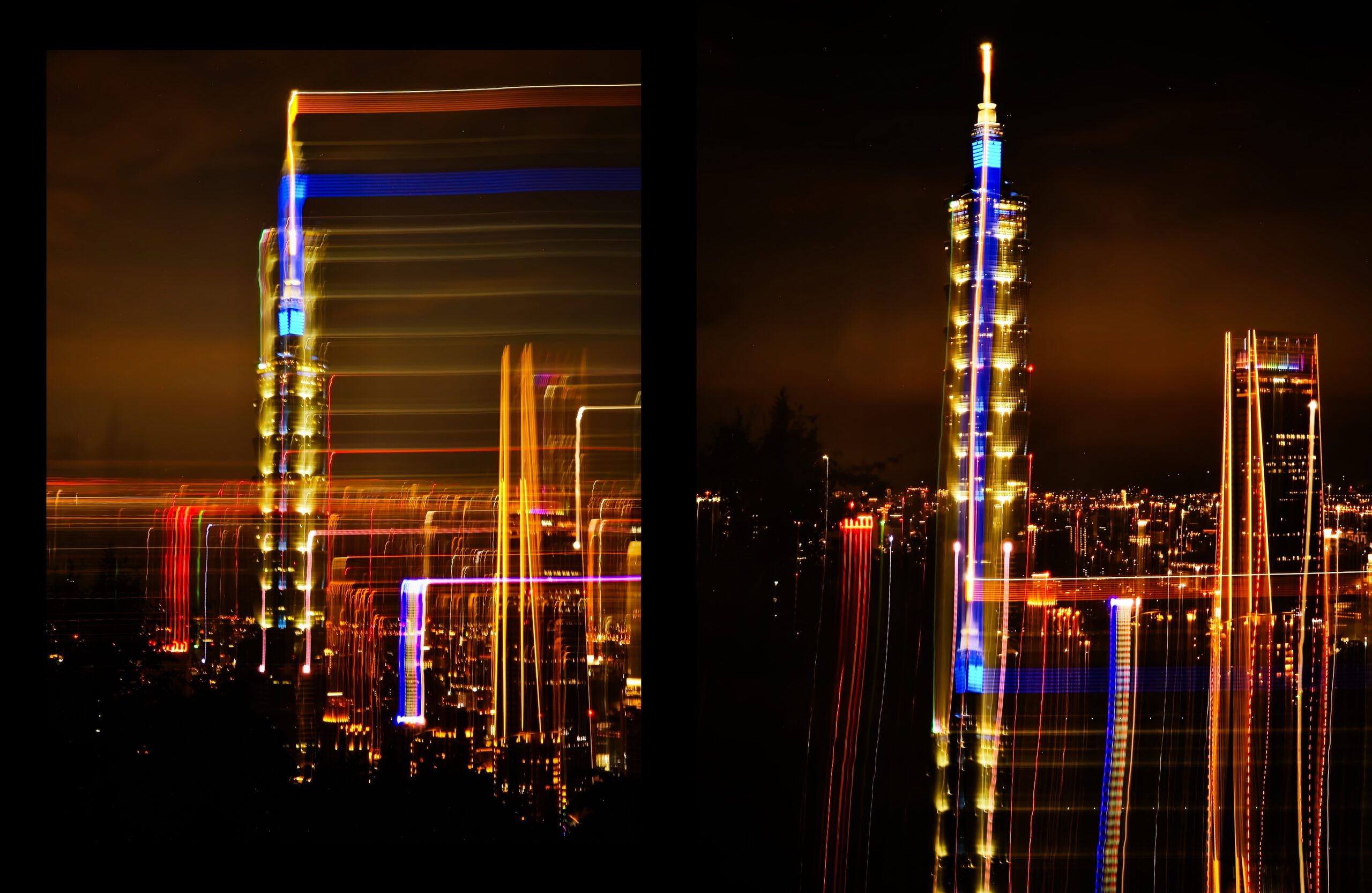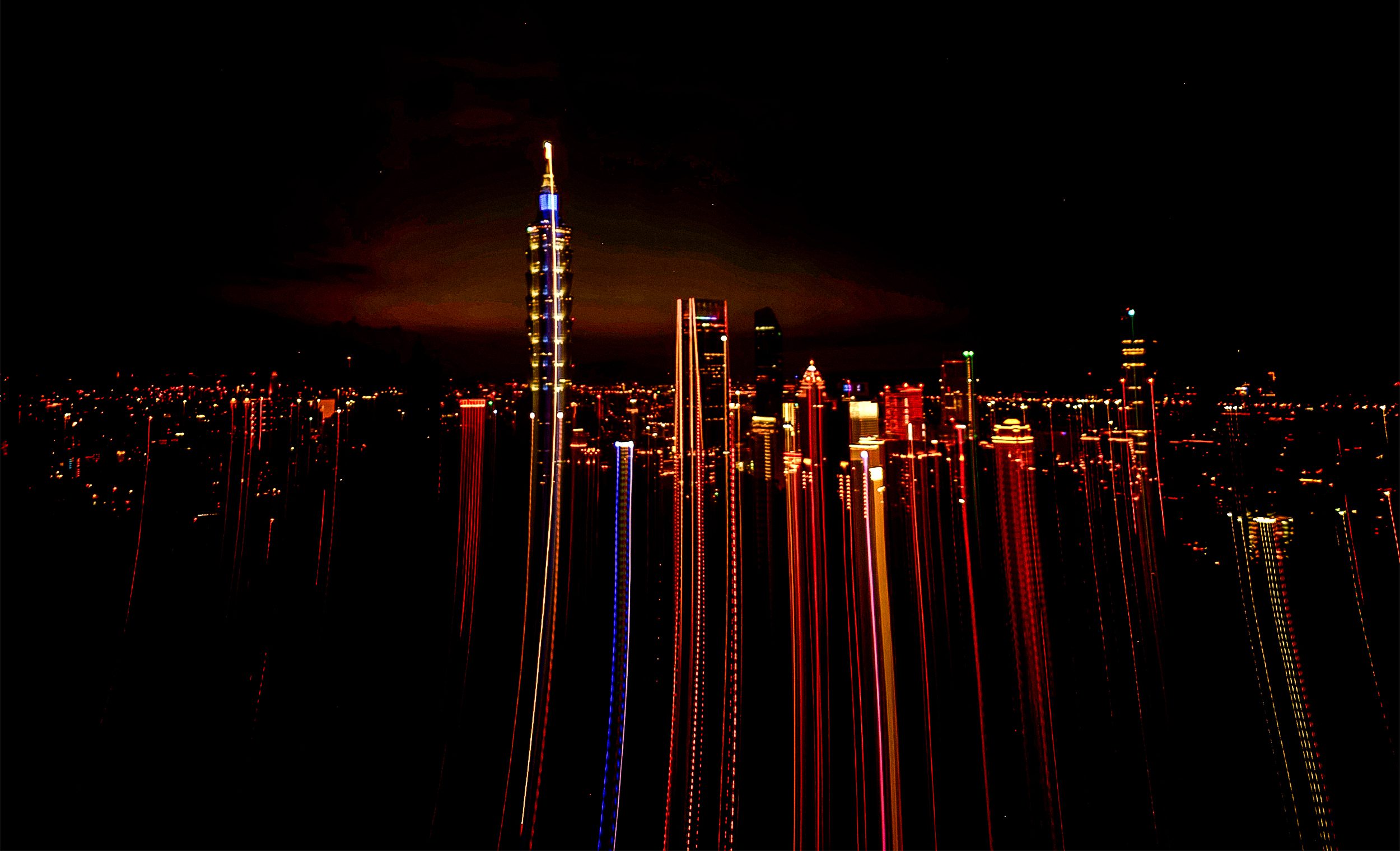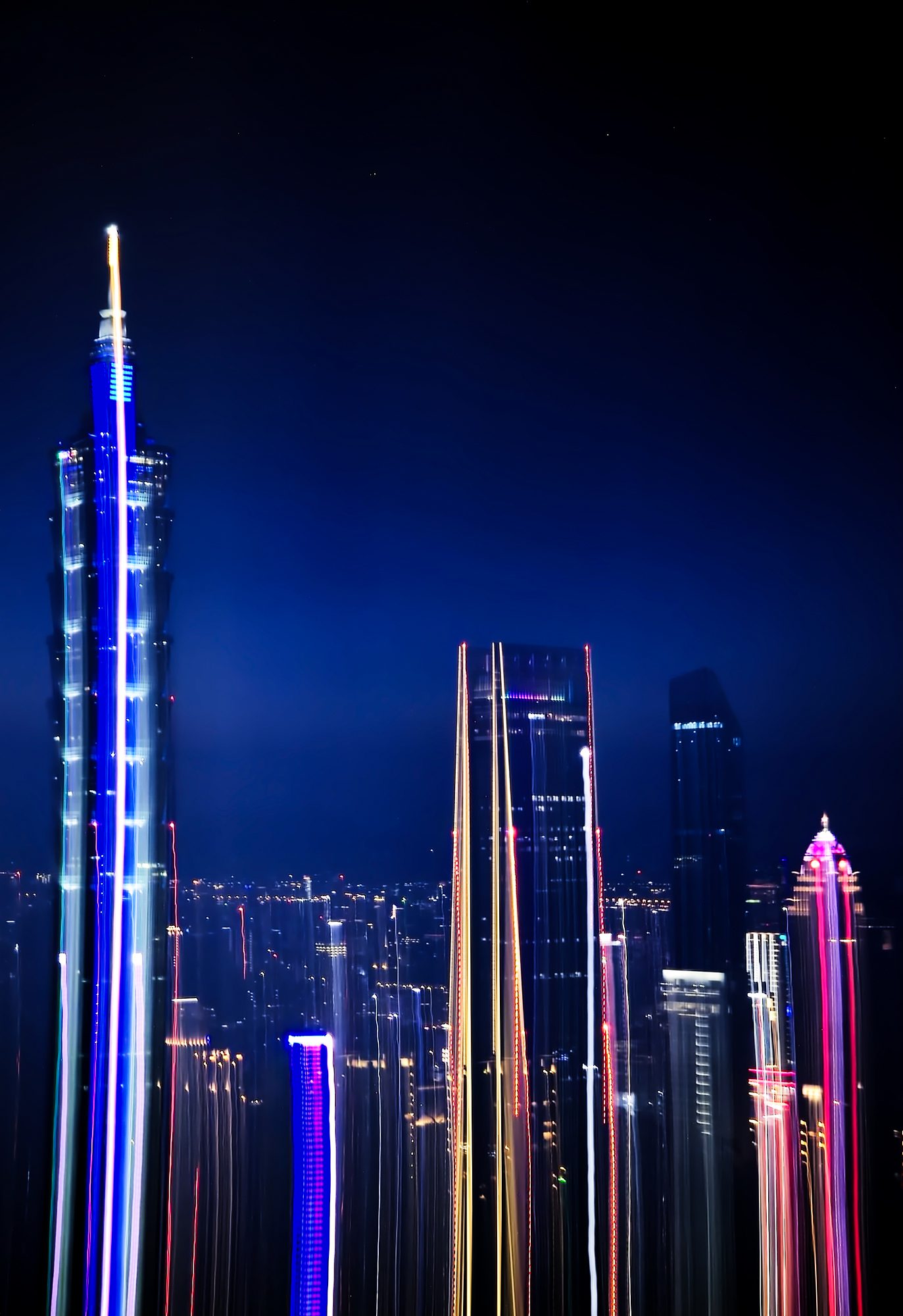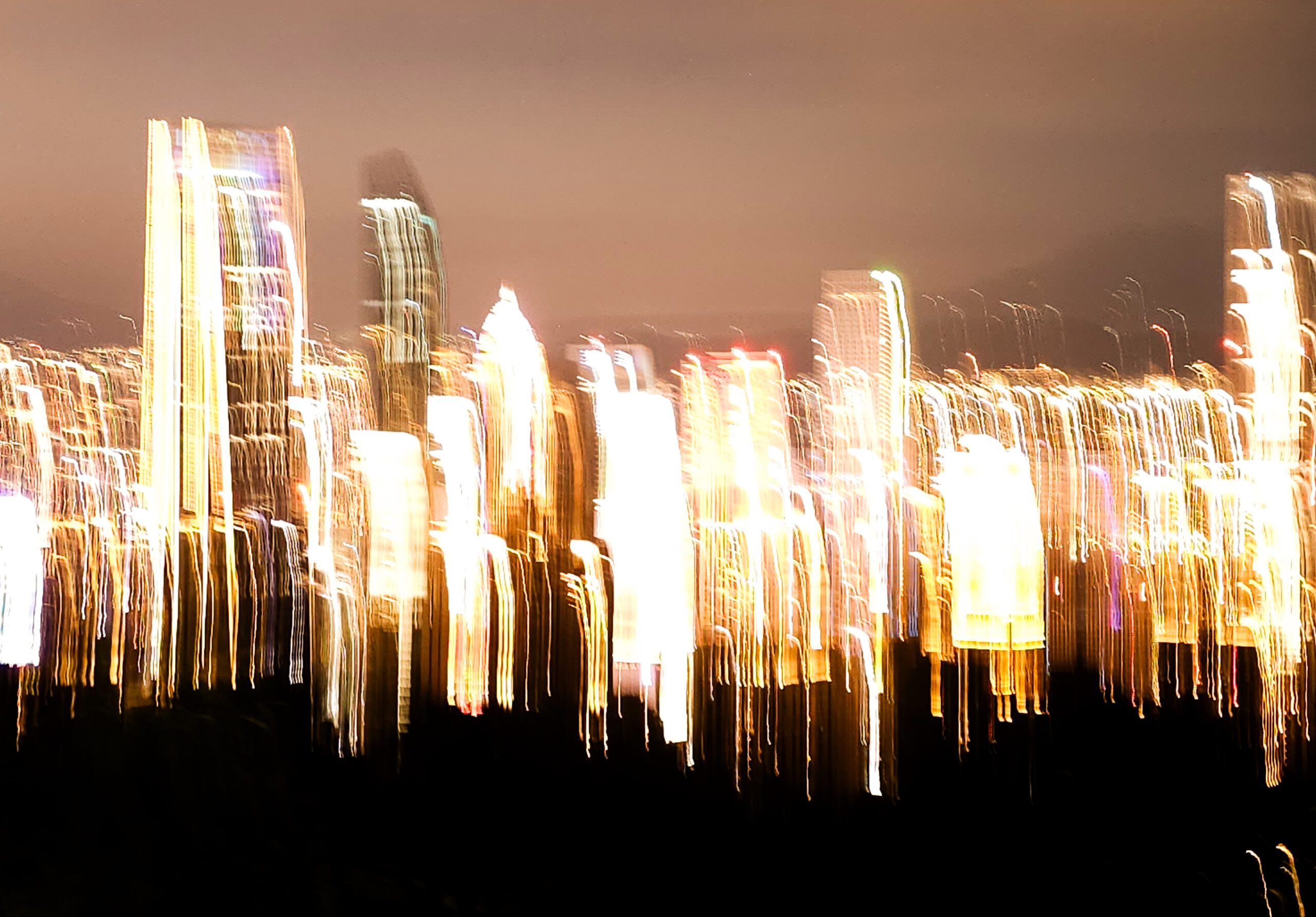 Here, the lens does not simply describe an urban reality: it transforms it into artistic material. The skyscrapers, extended into trails of light, become brushes tracing lines of fire on the nocturnal canvas.